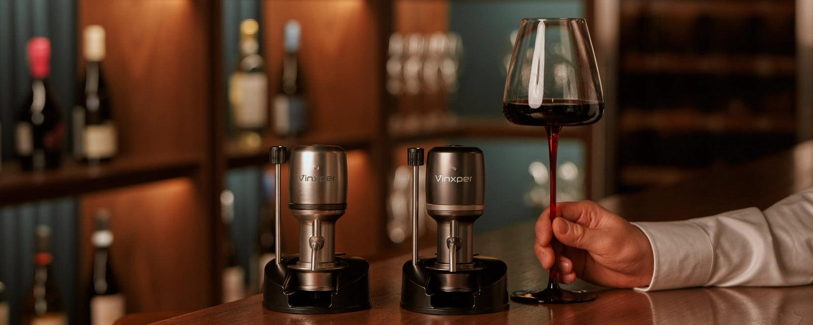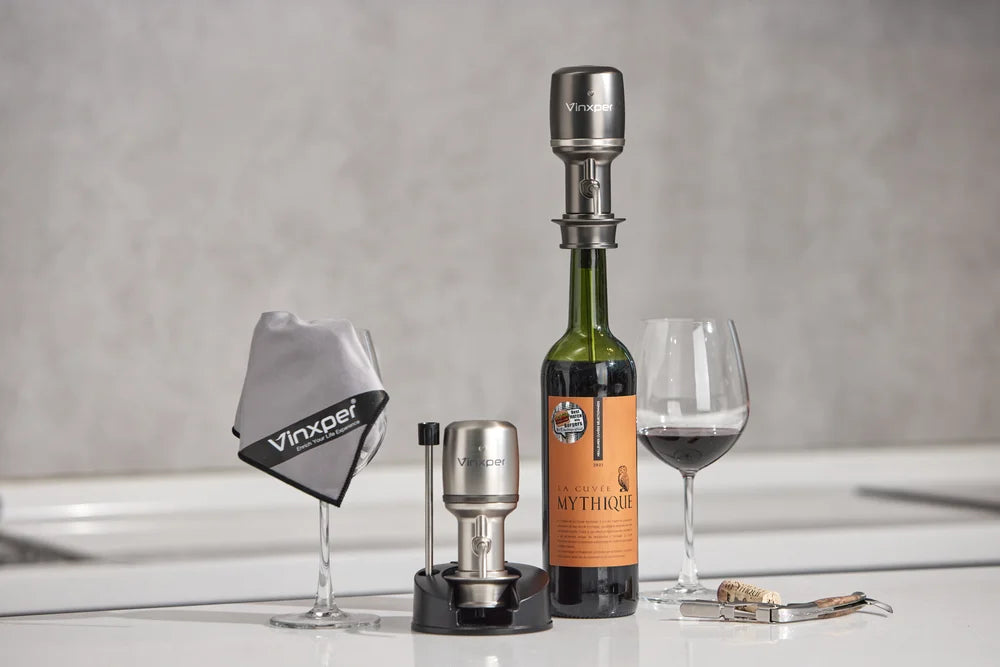 Vinxper Expert is currently the fastest, most effective and most convenient device in the world. It not only effectively promotes the softening of tannins in wine, reduces bitterness and astringency and instantly releases the aroma, but also allows people to experience the true flavor of wine at different decanting times, and now it has appeared in our lives.