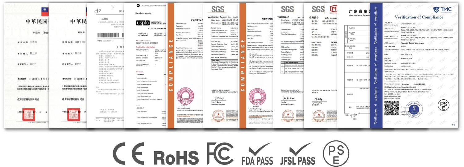 Vinxper's exclusive patented aeration technology is the first to accurately and freely adjust the 0-240mins wine decanting effect (Suitable for 99% of young wines aged 3 to 7 years), as well as TYPE-C Charging and Water-Resistant Design. It not only can replace the traditional glass decanter, but also improve the current problems of electric wine aerators on the market, such as battery leakage, unstable aeration, water intrusion in the aerator body, and possible wine dripping.